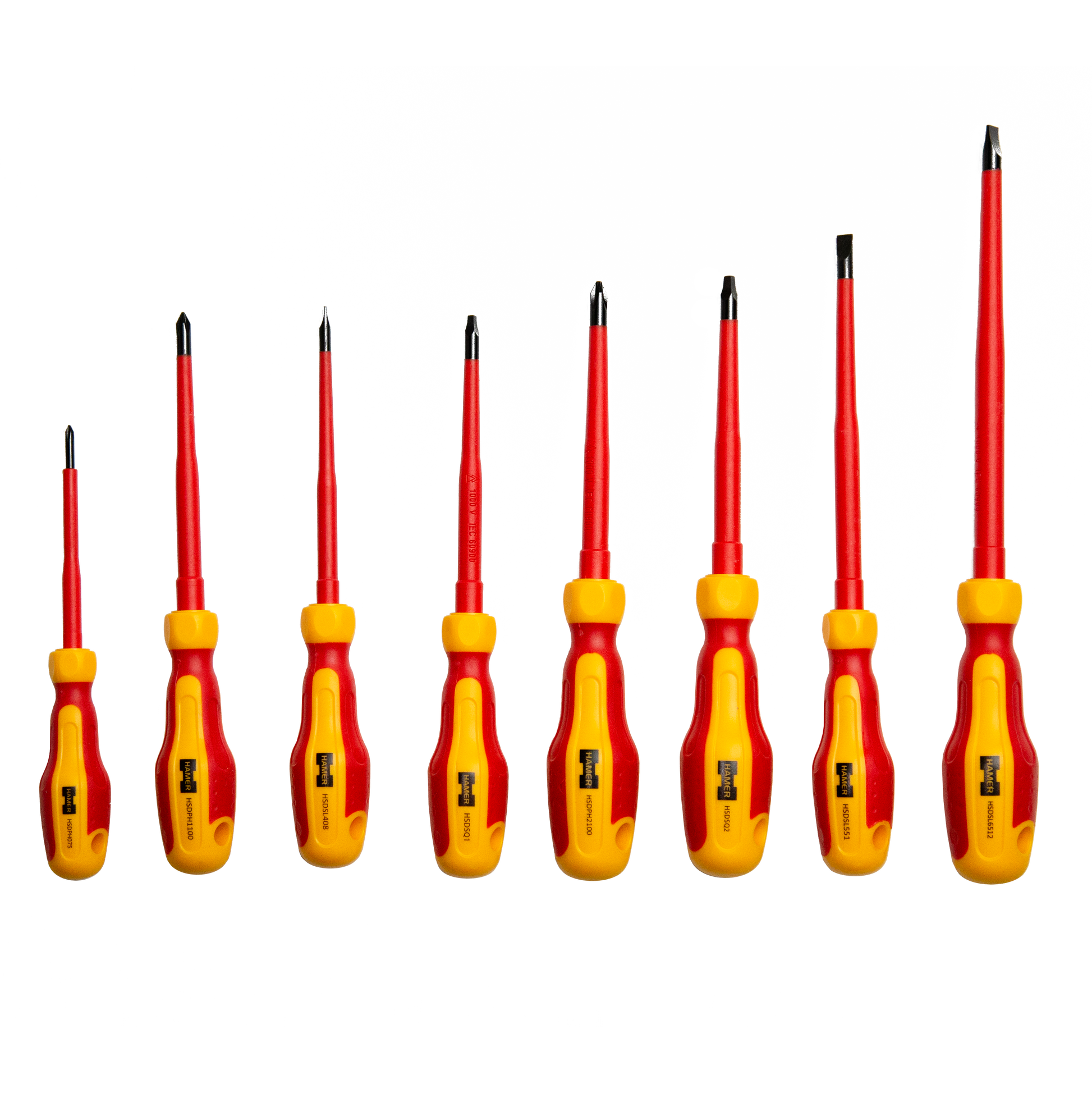 Designed with ergonomical anti-roll handles that are 1000V VDE insulated and feature oil and slip resistance.